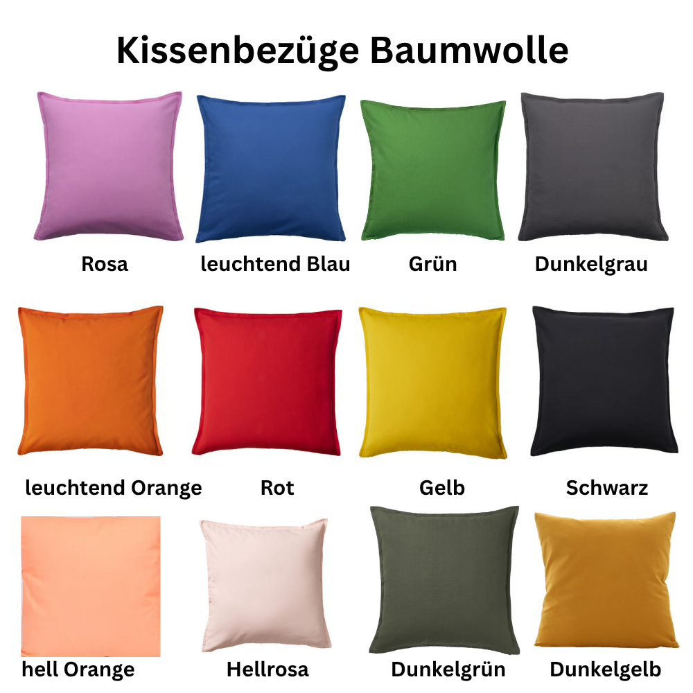 Wähle aus verschiedenen Kissen-/ Motiv-/ Schriftfarben deine individuelle Gestaltung.