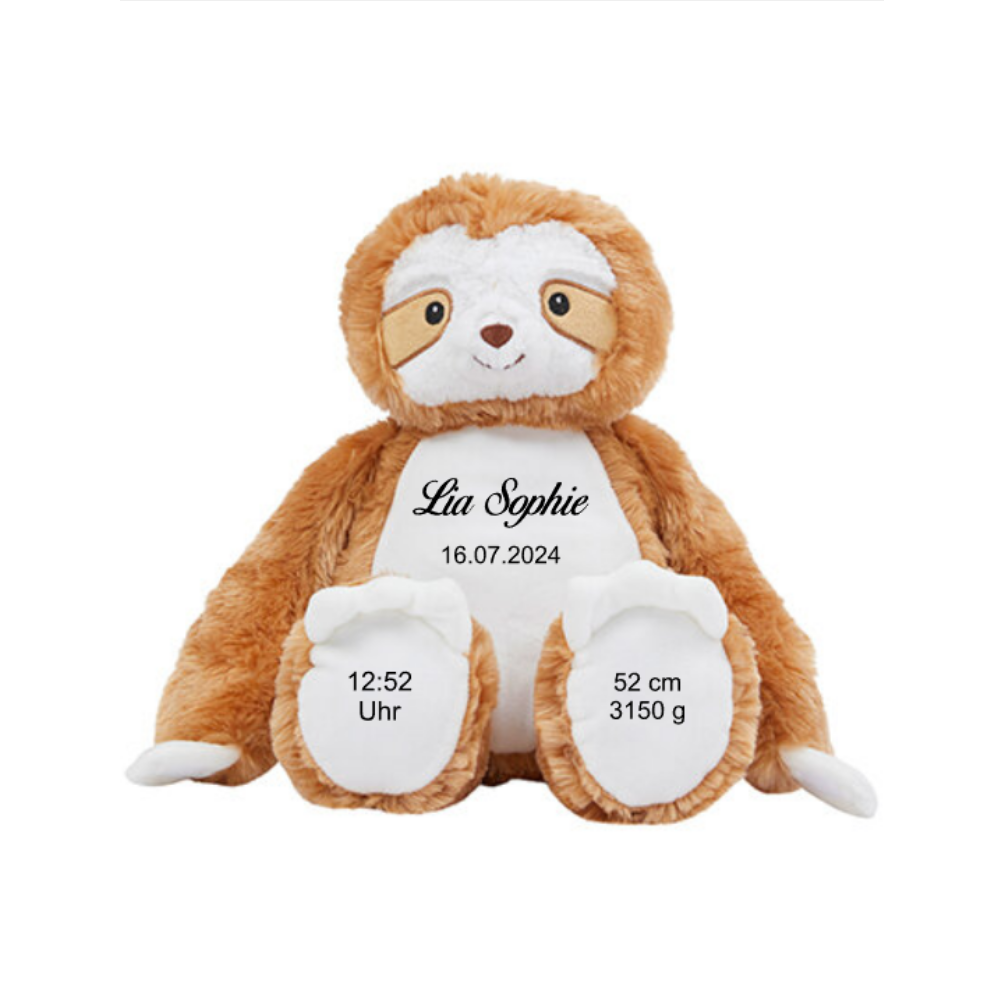 Auf dem Kuscheltier werden der Name, das Datum, das Gewicht, die Zeit und die Größe aufgedruckt (Sublimation). 😊