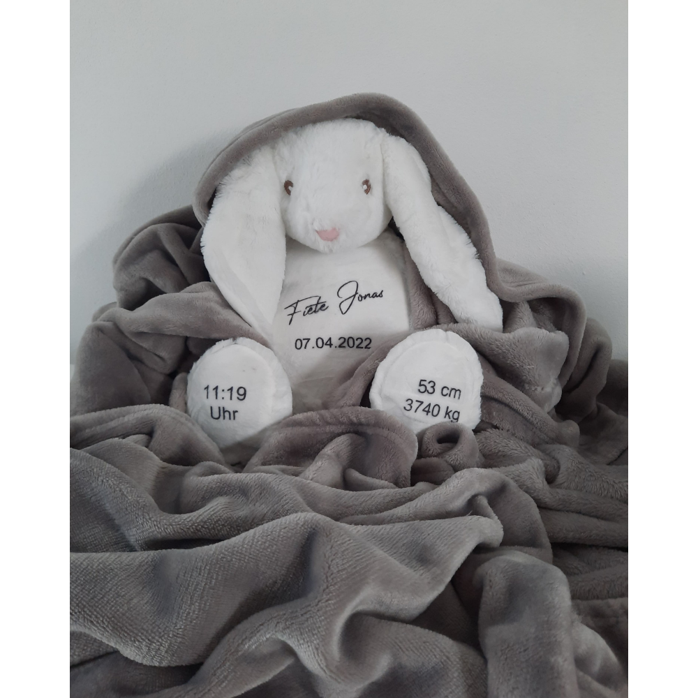 Du suchst nach einem Geschenk zur Geburt - da wäre doch ein Kuscheltier mit den Geburtsdaten des Babys eine schöne Idee!