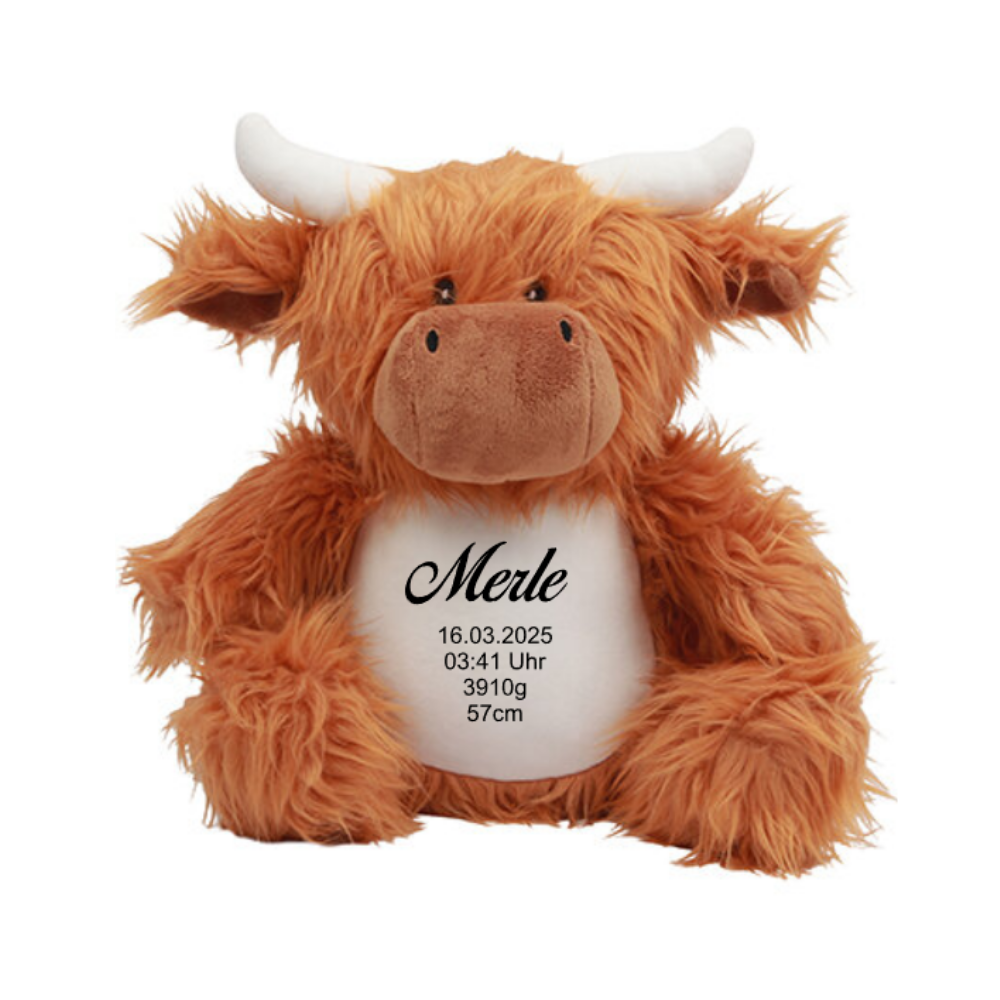 Auf dem Kuscheltier werden der Name, das Datum, das Gewicht, die Zeit und die Größe aufgedruckt (Sublimation). 😊