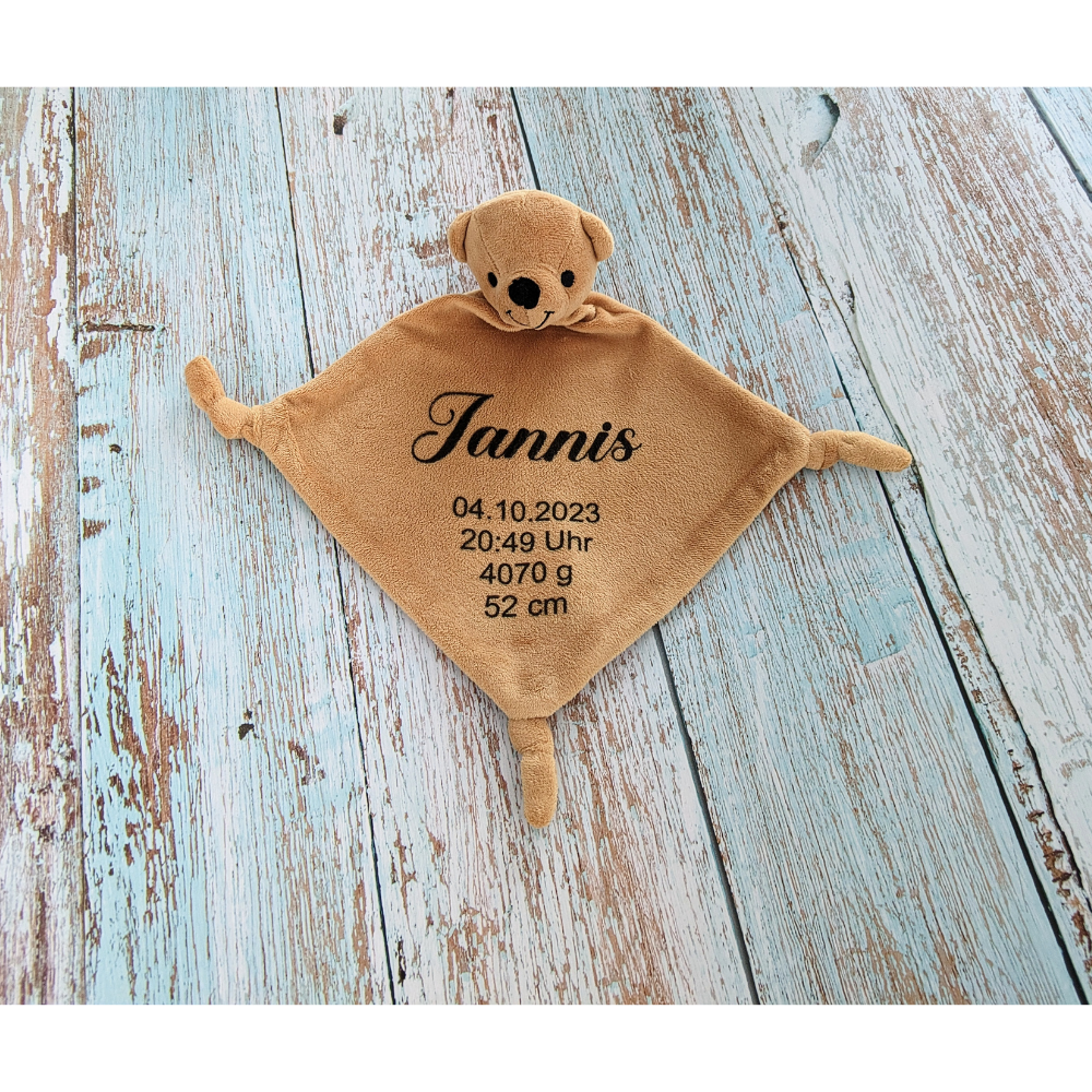 Was soll ich zur Geburt schenken! Dir fehlt eine Idee: hier wäre ein tolles Geschenk zur Geburt - ein Kuscheltier/Schnuffeltuch mit den Geburtsdaten des Babys!