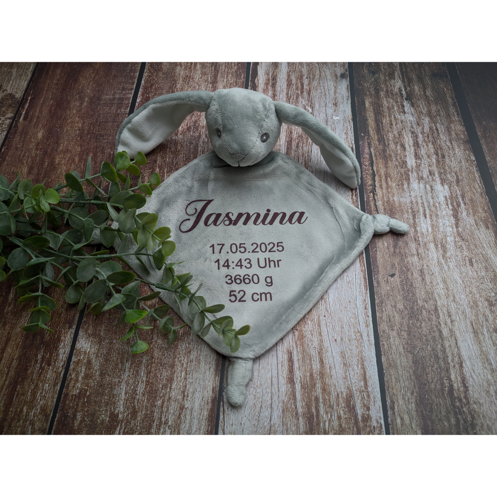 Ein Schnuffeltuch mit Namen - Geburtsdatum - Gewicht - Uhrzeit - Größe - wie du es gerne möchtest. Vielleicht hast du auch ganz andere Wünsche!! 😊