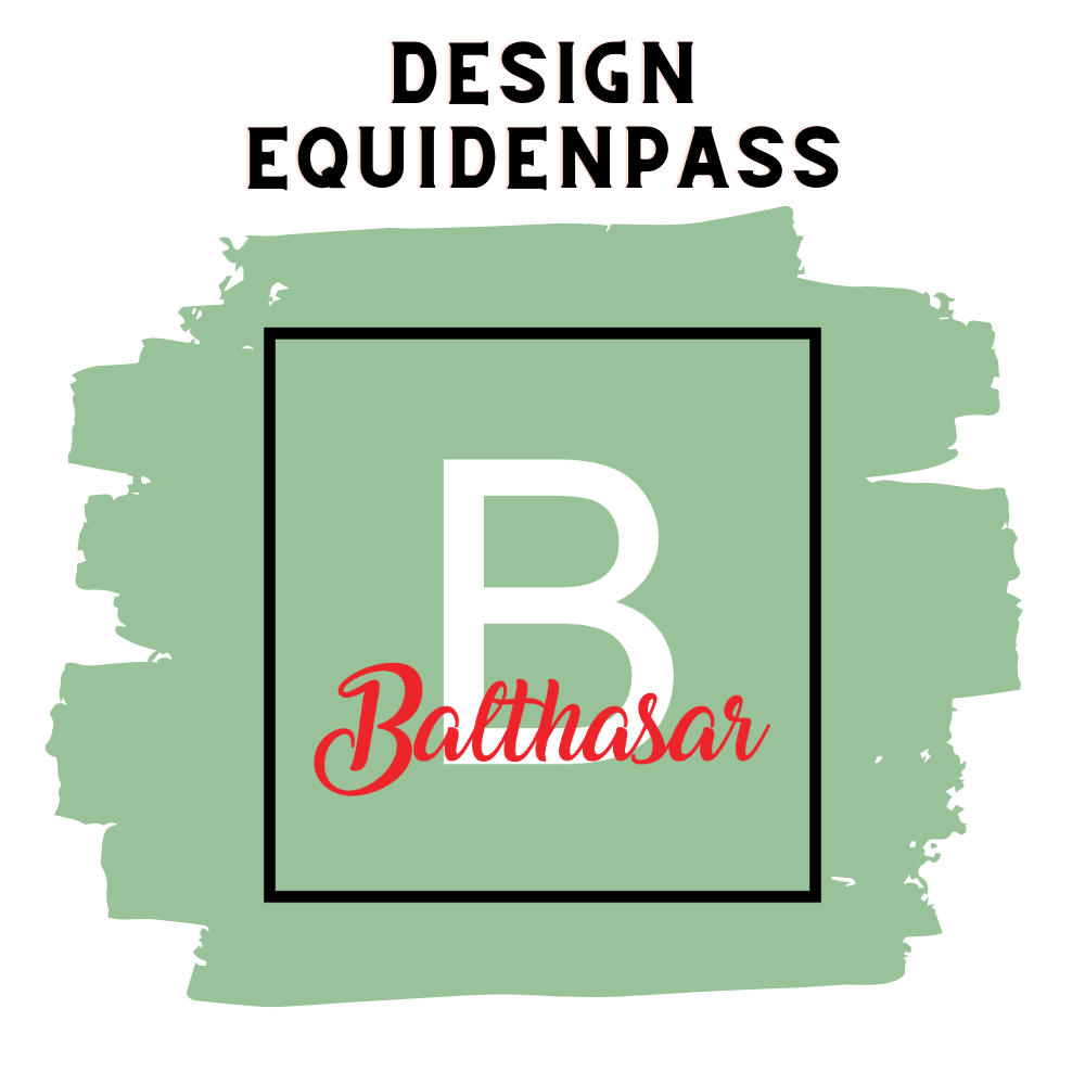 Farbe für Schrift und Motiv sind frei wählbar. "Equidenpass" Schriftart wie abgebildet; für den Namen ist die Schriftart frei wählbar