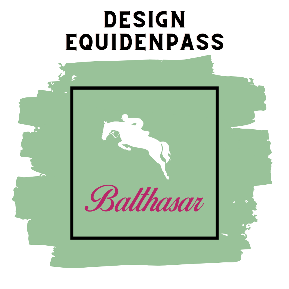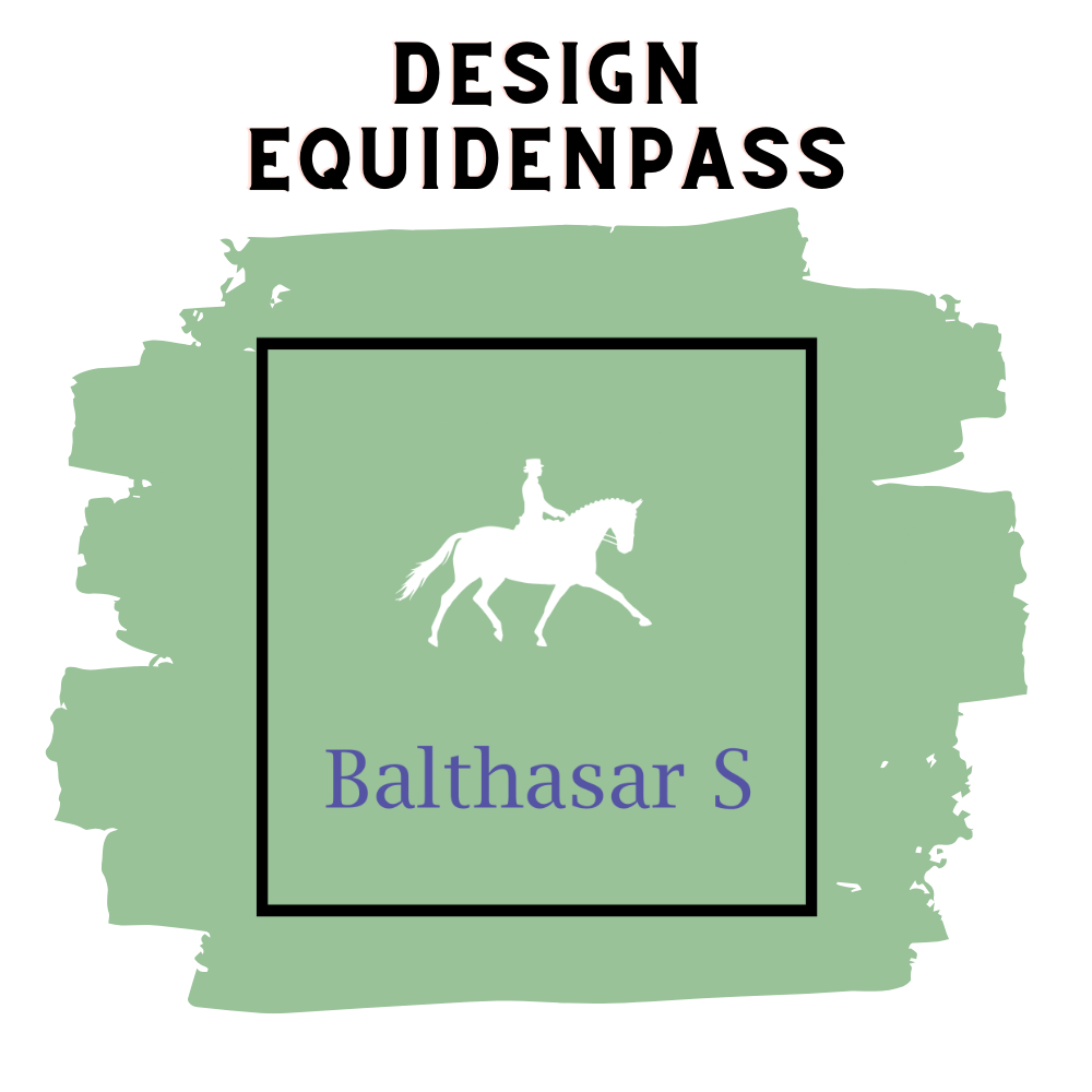 Farbe für Schrift und Motiv sind frei wählbar. "Equidenpass" Schriftart wie abgebildet; für den Namen ist die Schriftart frei wählbar