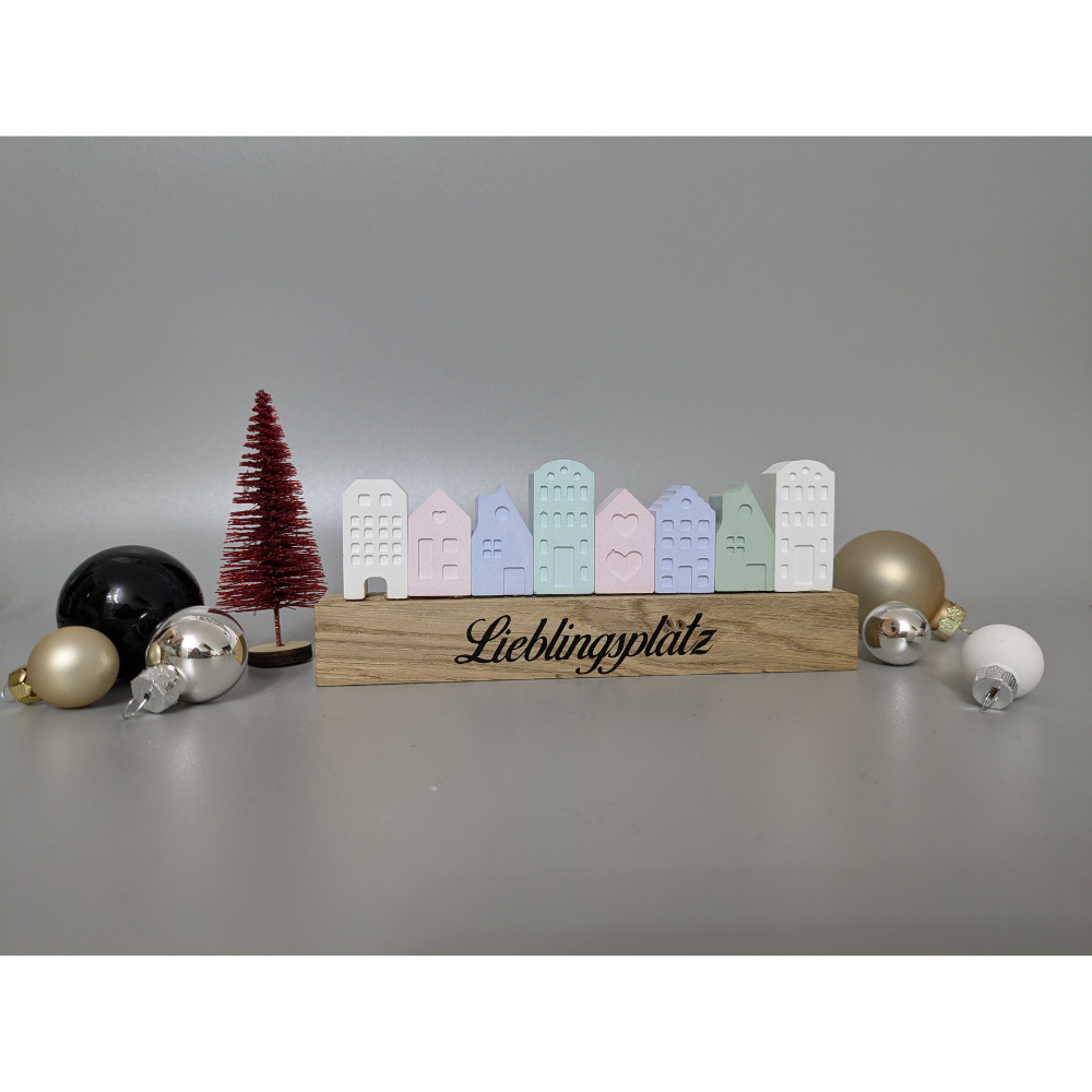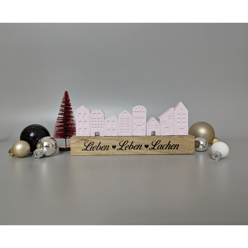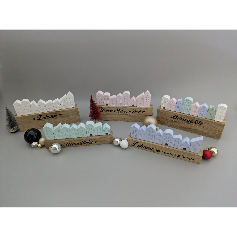 Die Häuserreihe gibt es mit verschiedenen Texten - sie passen perfekt in jedes Heim, ob als Dekoration für das eigene Heim oder als Geschenk perfekt geeignet.