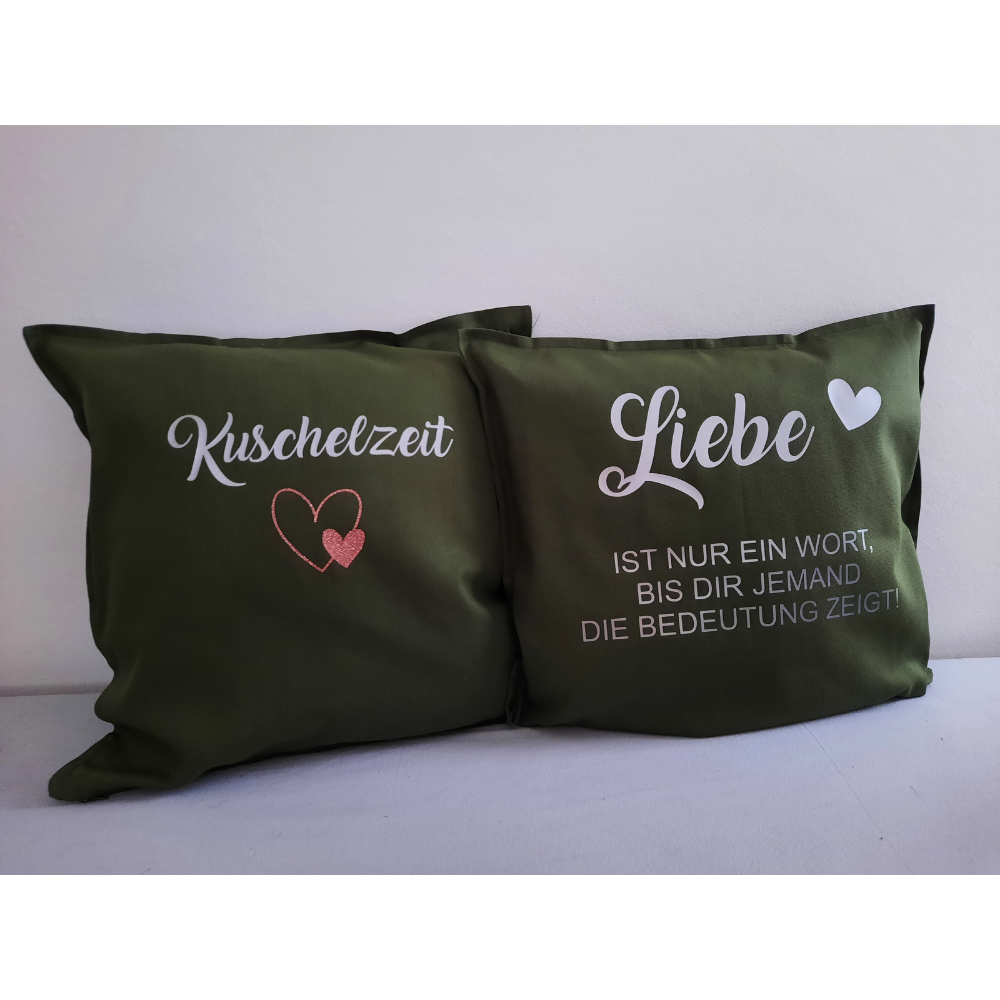 Wähle aus verschiedenen Kissen-/ Motiv-/ Schriftfarben deine individuelle Gestaltung.