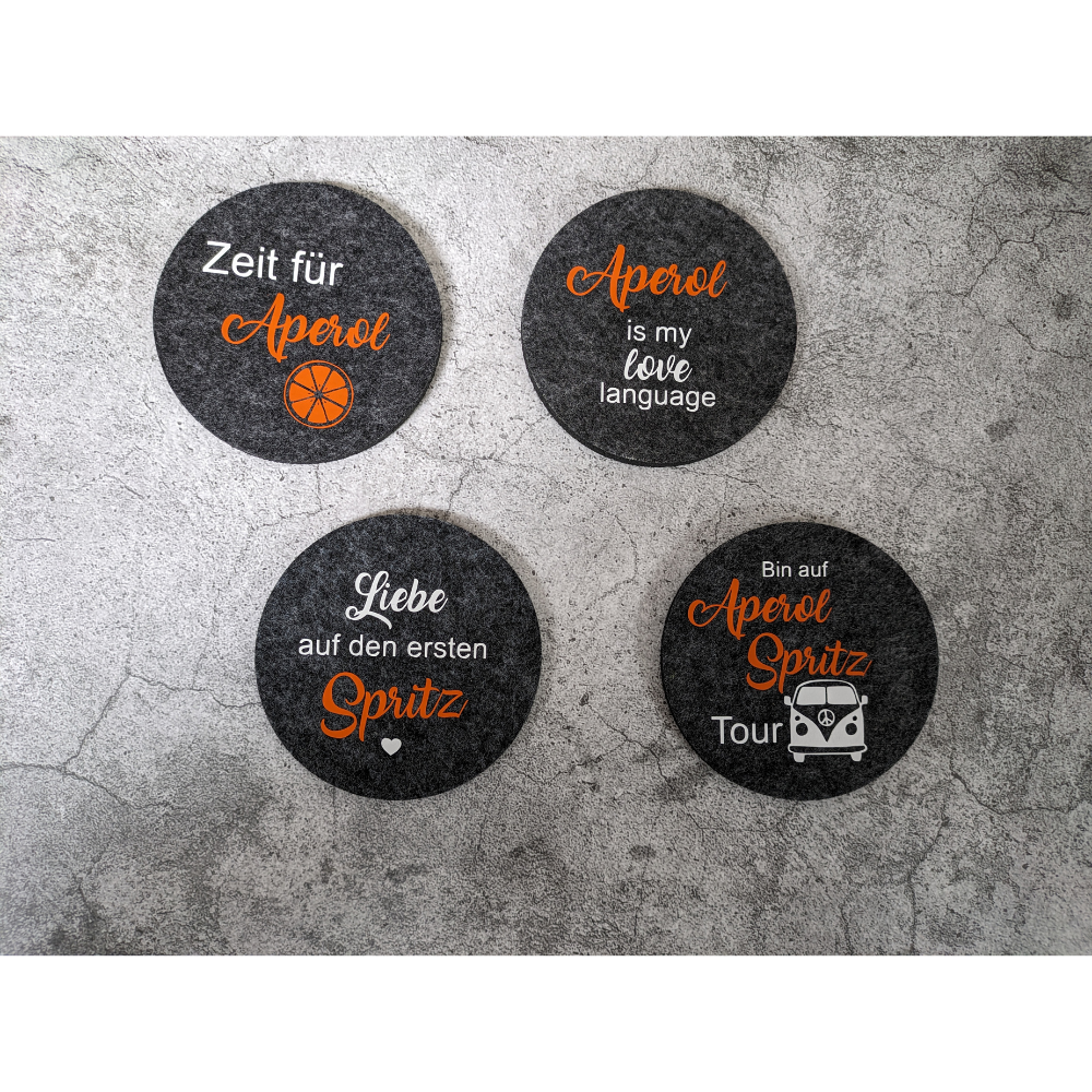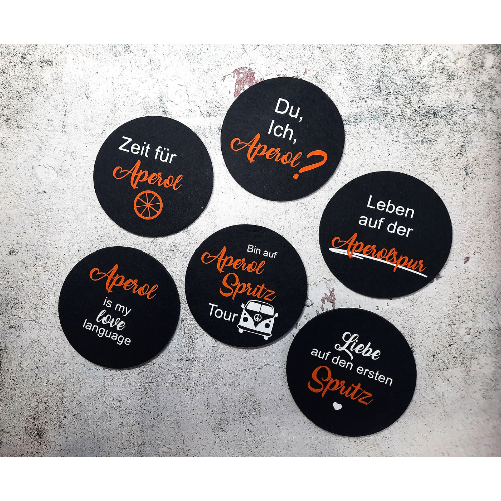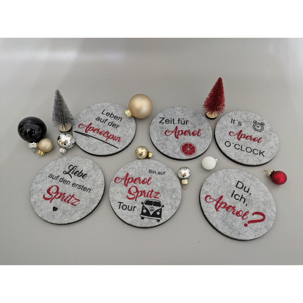 Du bist Aperolfan oder kennst jemanden der Aperol liebt? Dann fehlen bestimmt noch passende Filzuntersetzer zum Lieblingsgetränk!!!